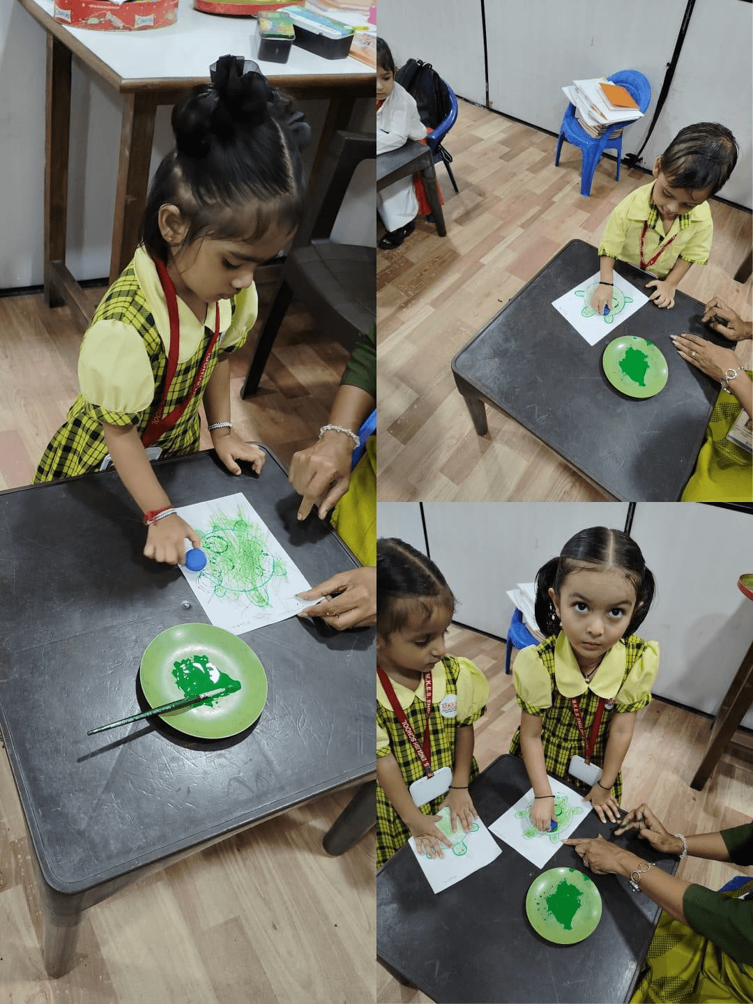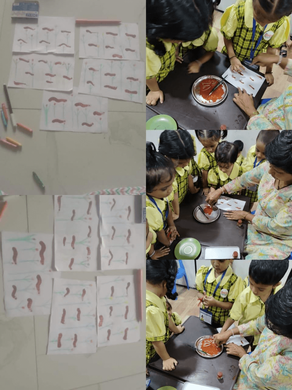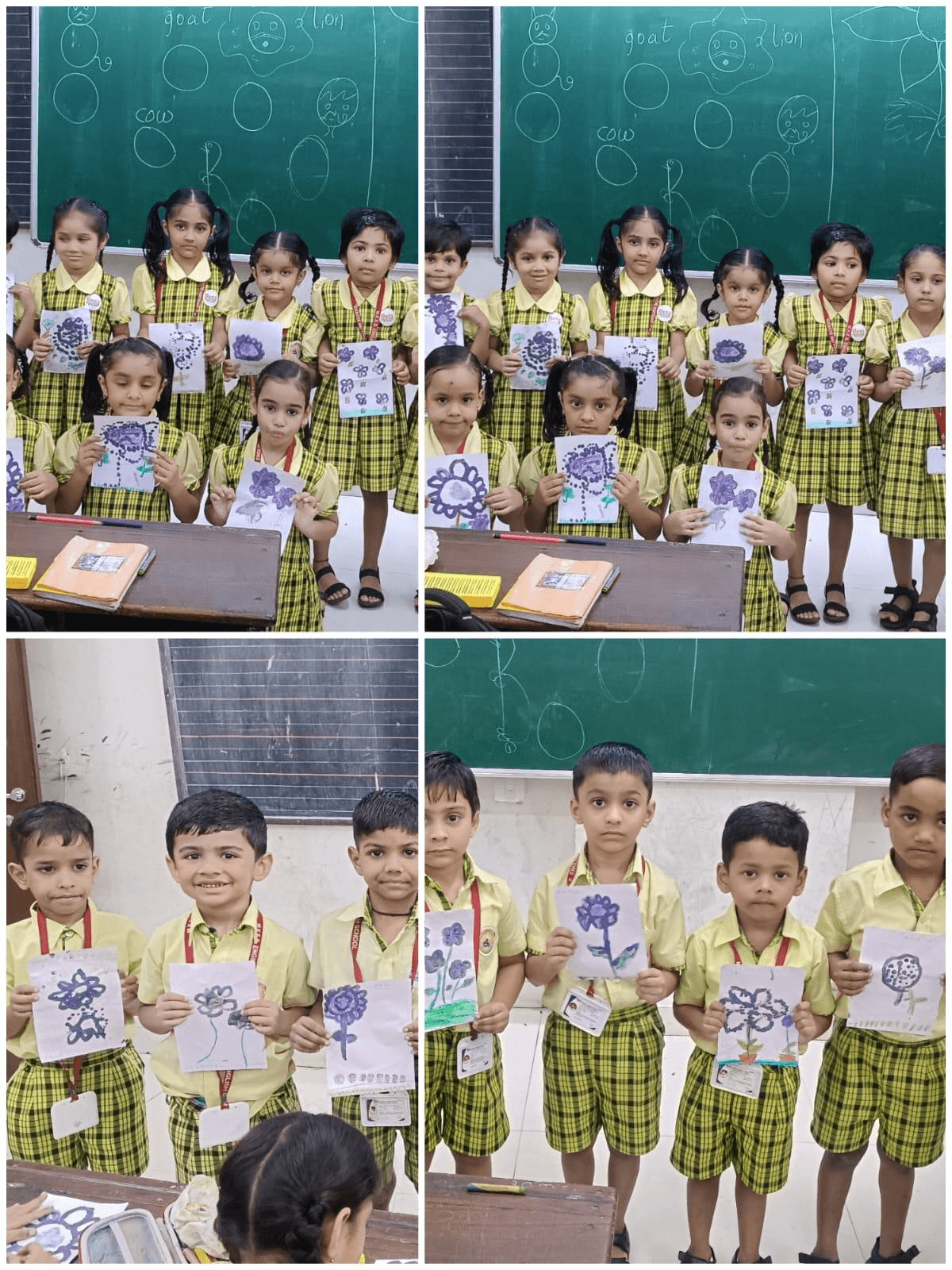 A fun class activity was done where children stick marigold petals on a flower picture. It was a bright and happy day for all.