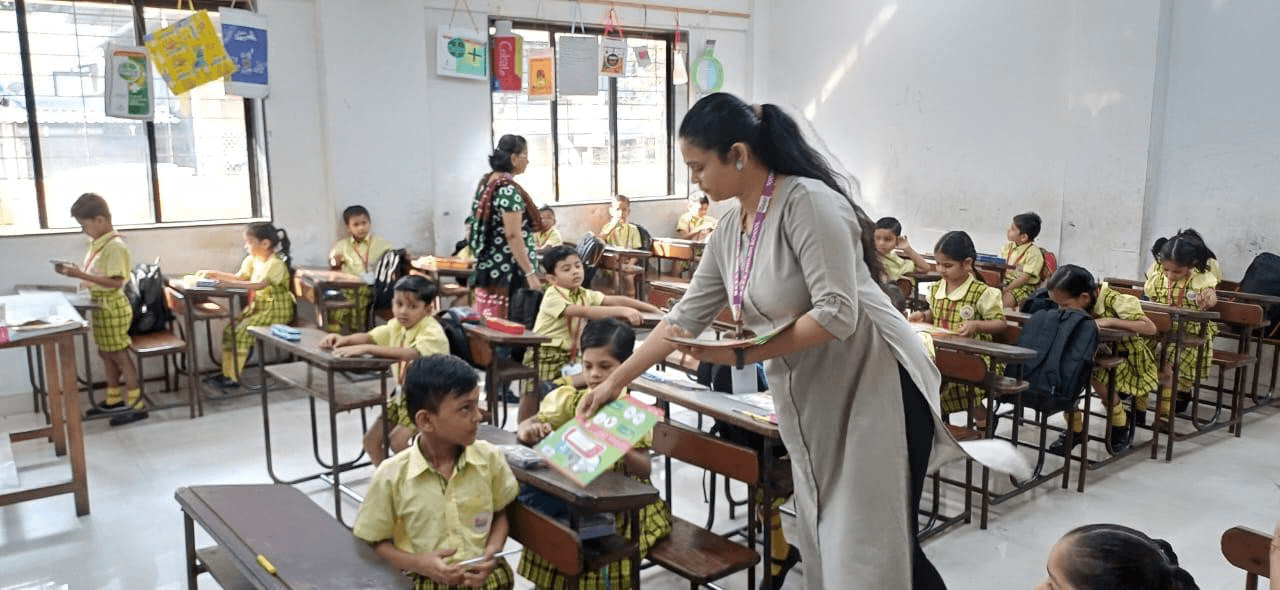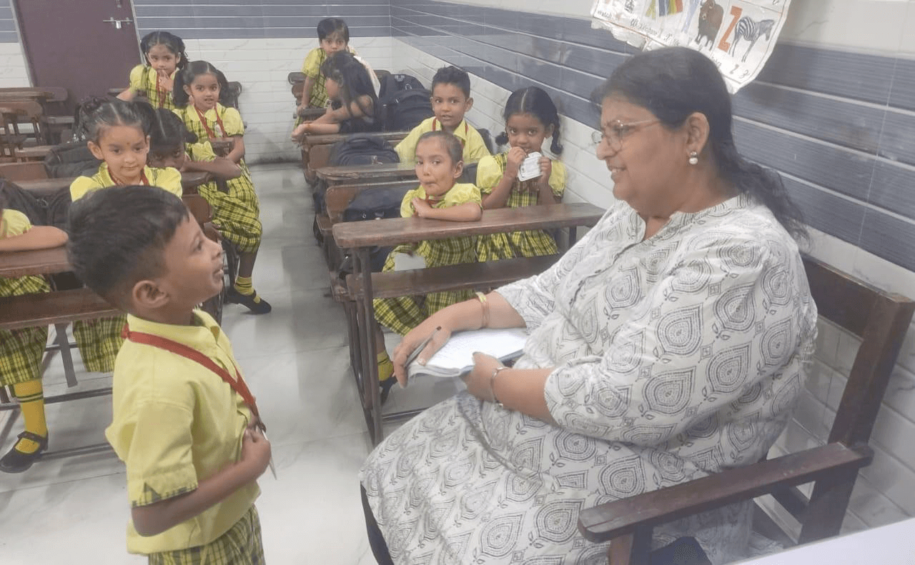 The little ones of Pre- Primary Section welcomed with the flower batch made by our teachers.