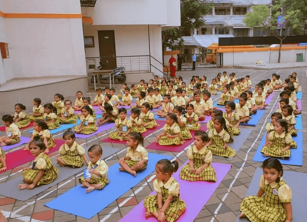 The difference between yoga and exercise was explained to the kids. Yoga helps in relaxing our mind and body.